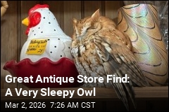 US | strange stuff Great Antique Store Find: A Very Sleepy Owl Little guy was just snoozing next to a chicken-shaped cookie jar By Newser Editors and Wire Services Posted Mar 2, 2026 7:26 AM CST Copied An owl sleeps on a shelf next to a cookie jar shaped like a chicken at the Market Place antique store in East Durham, NY, on Feb. 21, 2026 (New York State Department of Environmental Conservation via AP) Shoppers in upstate New York earlier this month turned up a rare find while perusing a local antique store this month: tucked next to a cookie jar made in the shape of a chicken was a live owl resting peacefully on a shelf. The state Department of Environmental Conservation said Friday that the incident happened on Feb. 21 in the hamlet of East Durham, about 130 miles north of Manhattan. The agency said customers at the Market Place had spotted "something extremely lifelike" on one of the shelves and alerted store staff, reports the AP. Environmental conservation police officers arrived to find a brown-and-white owl perched on a shelf with its eyes firmly shut. An officer gently cradled the sleeping owl to remove it from the store, and then released it into a wooded area, where it flew into a nearby tree. The bird, an eastern screech owl, is nocturnal and typically nests in tree cavities, notes NEWS10. It is not immediately clear how it got inside the store. Read These Next Khamenei didn't expect strike, especially in daylight. Boebert defends leaking Hillary Clinton photo. Abduction survivor's story is one of pain and resilience. Baby born deep in Amazon rainforest is 'a source of hope.' Report an error